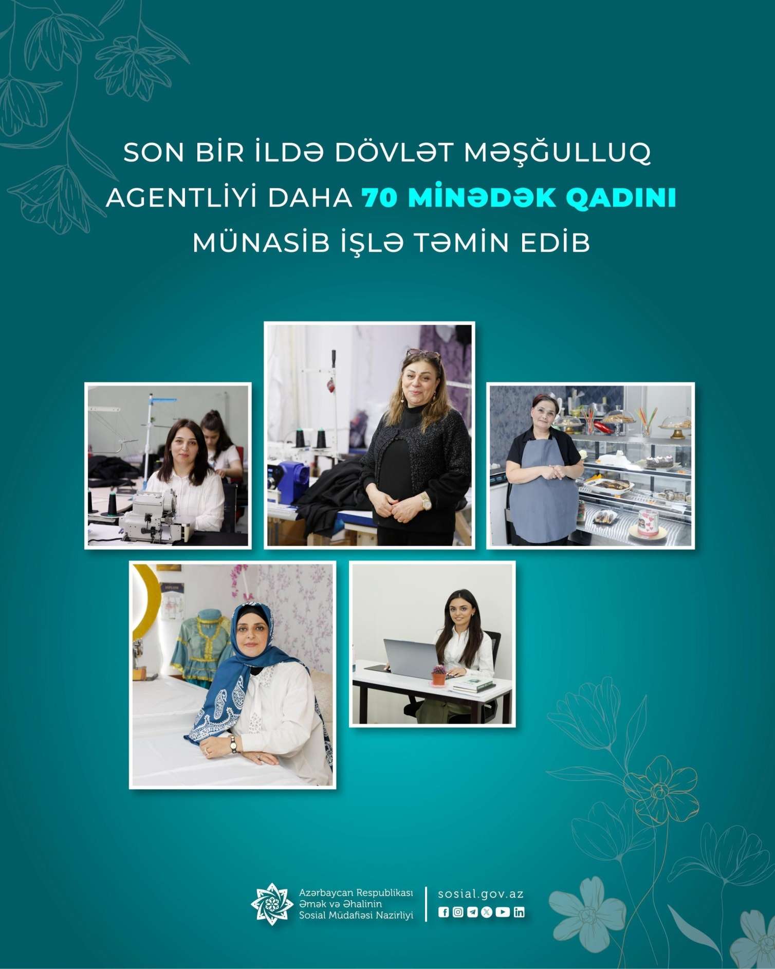 Əmək və Əhalinin Sosial Müdafiəsi Nazirliyinin tabeliyindəki Dövlət Məşğulluq Agentliyi tərəfindən bu istiqamətdə tədbirlərin davamı olaraq, 2025-ci ildə daha 69,5 min qadın münasib işlə təmin edilib.