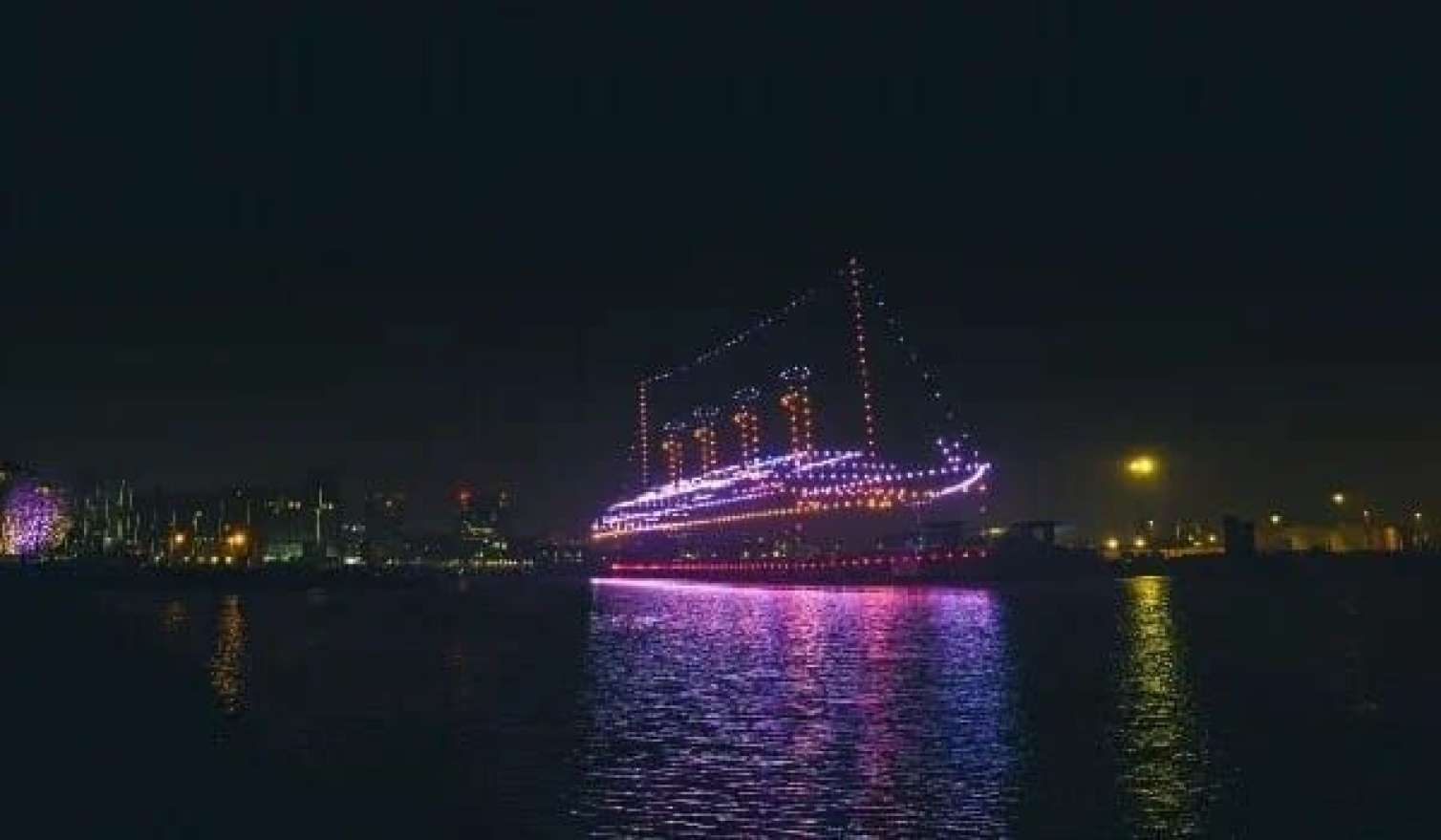 Təxminən min ədəd işıqlanan dron Belfast limanında əfsanəvi "Titanik" laynerinin siluetini canlandırıb.