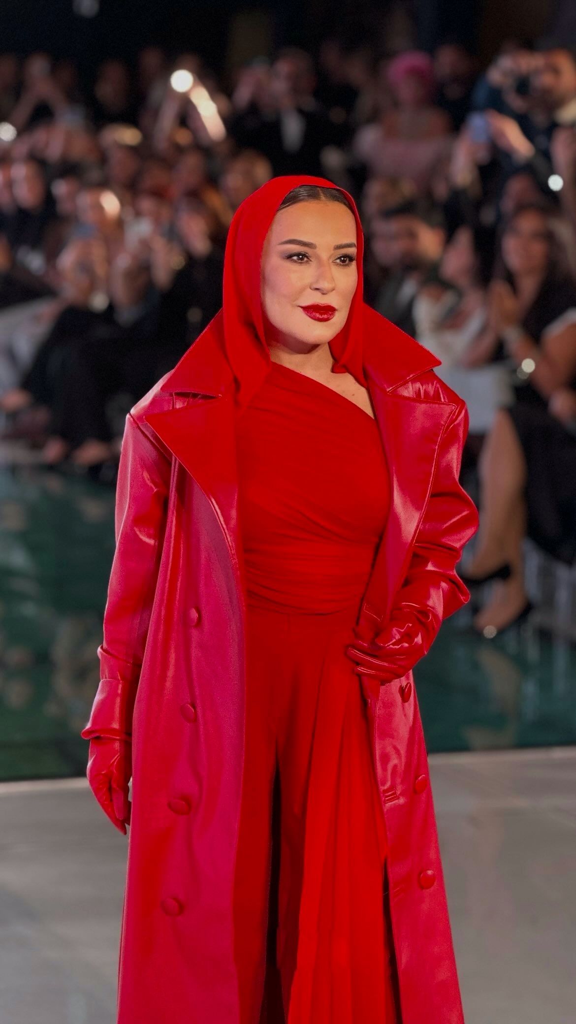 Xalq artisti şou ərzində qırmızı geyimləri nümayiş etdirib.