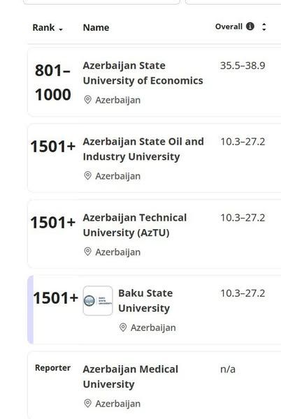 "Times Higher Education (THE) Dünya Universitetləri Reytinqi 2026-ya daxil olan Azərbaycan universitetləniri də təbrik edir, uğurlar arzu edirəm", - rektor əlavə edib.