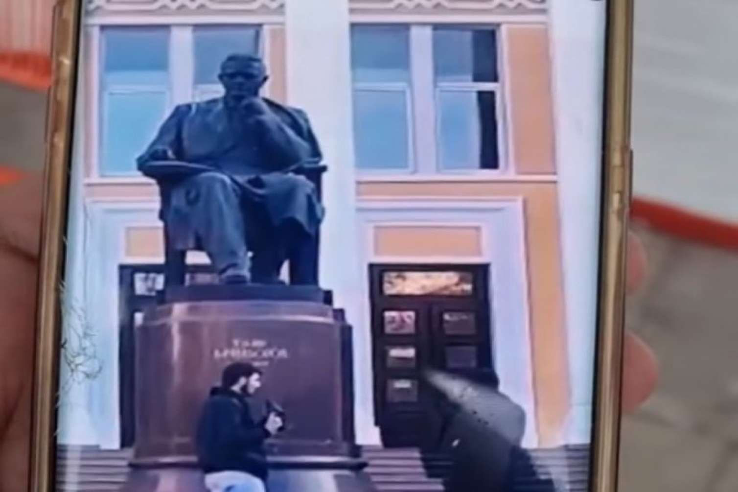 Bakupost.az məlumatına görə, görüntülərdən aydın olur ki, hələlik şəxsiyyəti məlum olmayan iki gənc aralarındakı zarafat zamanı biri digərinin ayaqqabısını heykəlin üzərinə atıb.