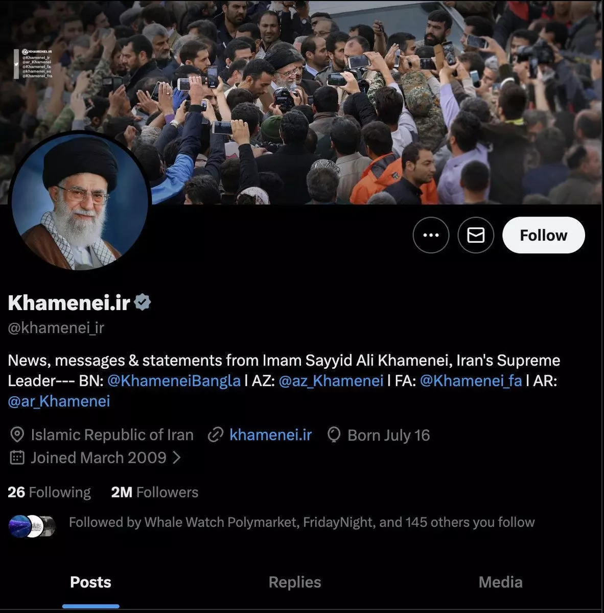 İranın mövcud bayrağı dini lideri Xameneinin hesabından da çıxarılıb.