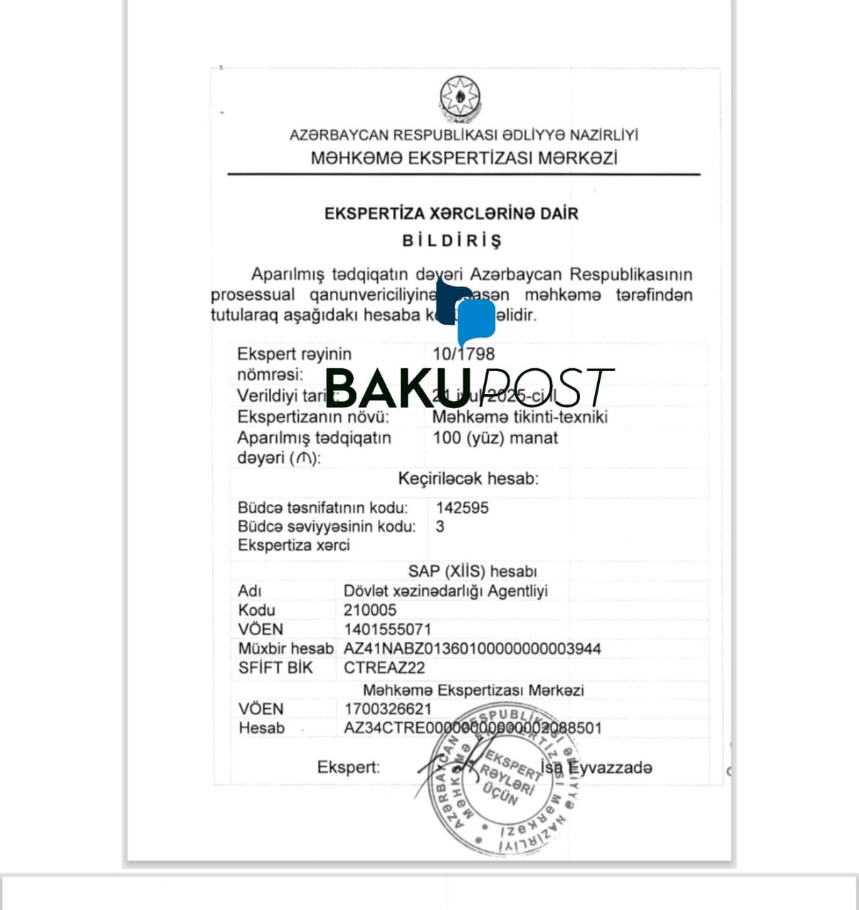 Məhkəmənin qərarı ilə təyin olunmuş ekspert müəyəyn edib: