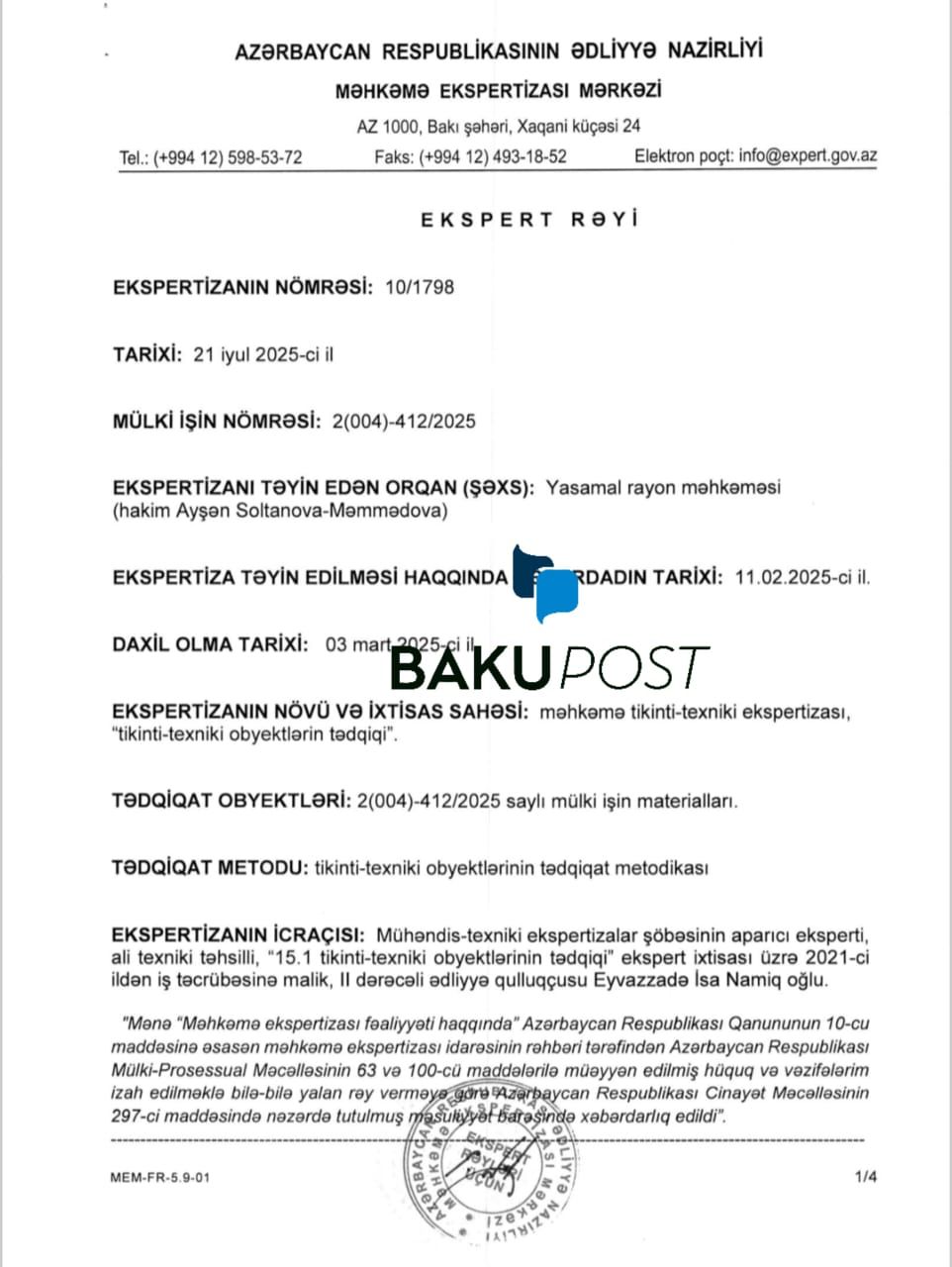 MƏHKƏMƏ EKSPERTİNİN RƏYİ